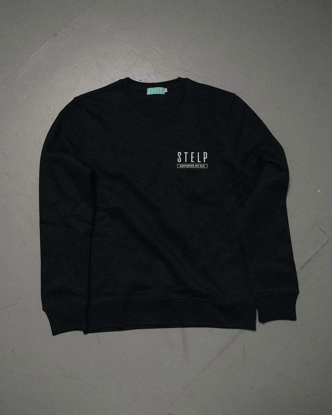 Schwarzer STELP Sweater mit Rundhals aus Baumwolle. Bequemer Fit, hochwertiges Material – für alle, die als STELP Supporter Haltung zeigen möchten.